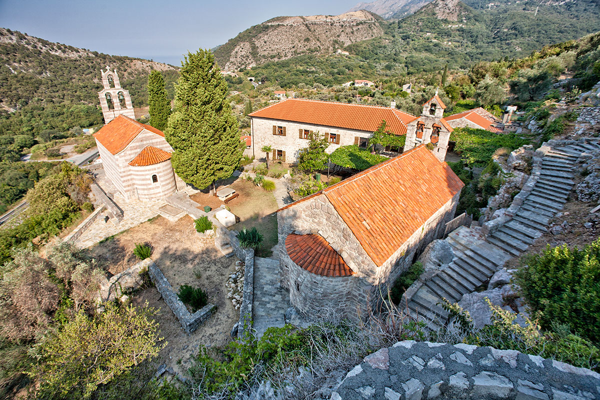 Manastir Gradište se nalazi na uzvišenju iznad Buljarice. Od Petrovca je udaljen 2,5 km u pravcu Bara. Manastir je podignut na ostacima antičke građevine. Pored konaka, sadrži tri crkve. Glavna manastirska crkva je posvećena Sv. Nikoli, a druge dvije Sv. Savi i Uspenju Bogorodice. Po predanju osnovan je u XII vijeku, a u pisanim dokumentima se pominje od 1305. godine, u vrijeme kralja Milutina. Čitava unutrašnjost crkve Sv. Nikole pokrivena je fresko slikarstvom koje je 1620. godine uradio Pop Strahinja iz Budimlja. Ikonostas crkve Sv. Nikole je izrezbario i oslikao slikar Vasilije Rafailović, pripadnik čuvene bokokotorske slikarske škole Rafailo Dimitrijević iz Risna. Naročito poznata i zanimljiva ikona na ovom ikonostasu je ikona na kojoj je predstavljen Sv. Hristifor sa pseće-magarećom glavom.