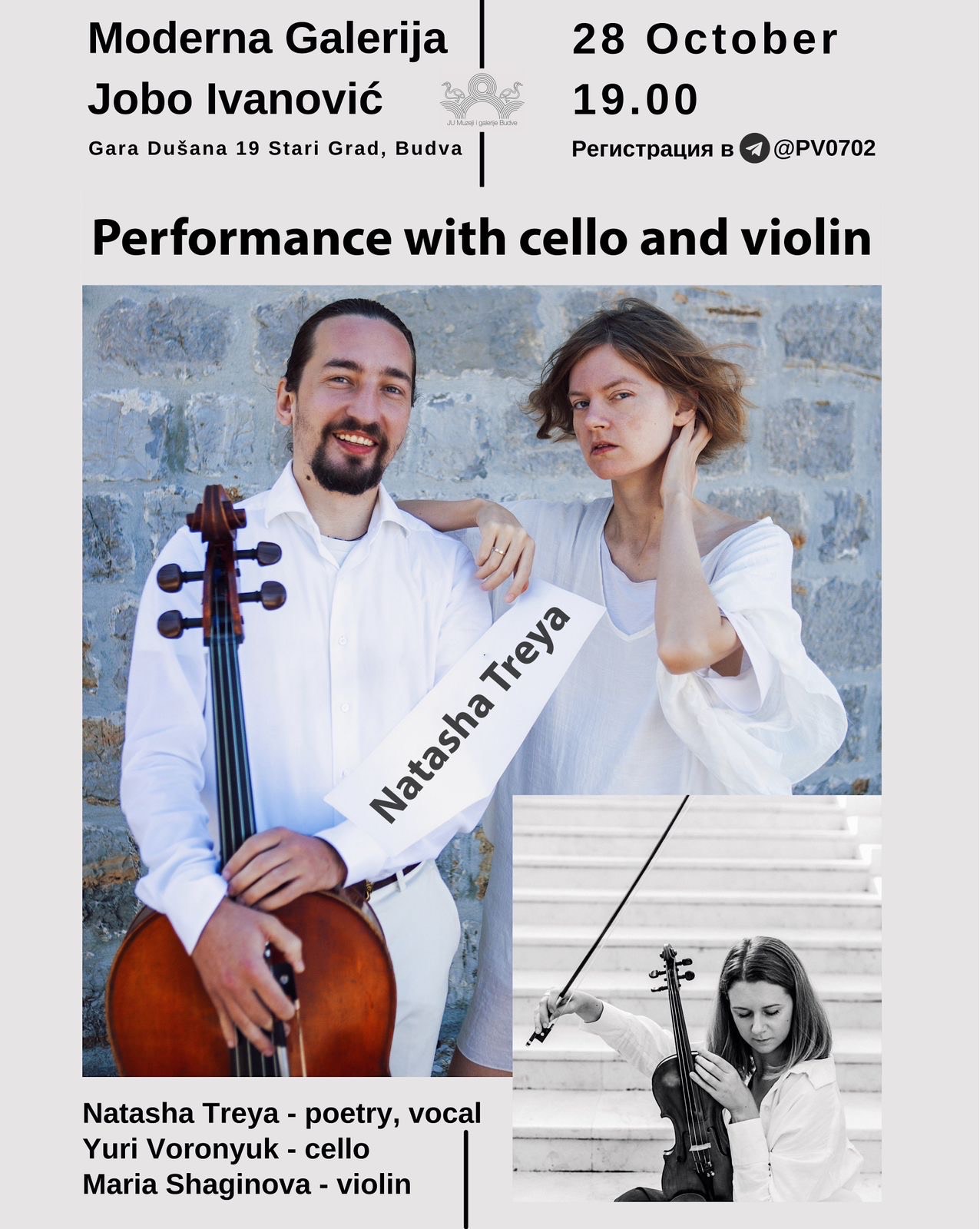 U subotu, 28. oktobra 2023. godine, u 19 časova u Modernoj galeriji „Jovo Ivanović” početi koncert u kojem će učestvovati Natasha Treya (poezija, vokal), Yuri Voronyuk (violončelo) i Maria Shaginova (violina).