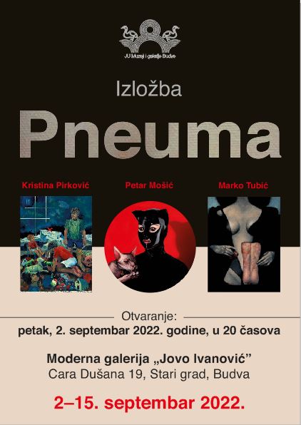U petak, 2. septembra 2022. godine u 20 časova u Modernoj galeriji „Jovo Ivanović” biti otvorena grupna izložba „Pneuma”. Izložbu će otvoriti Maja Živanović, likovni kritičar , a kustoskinja izložbe je Senka Subotić.