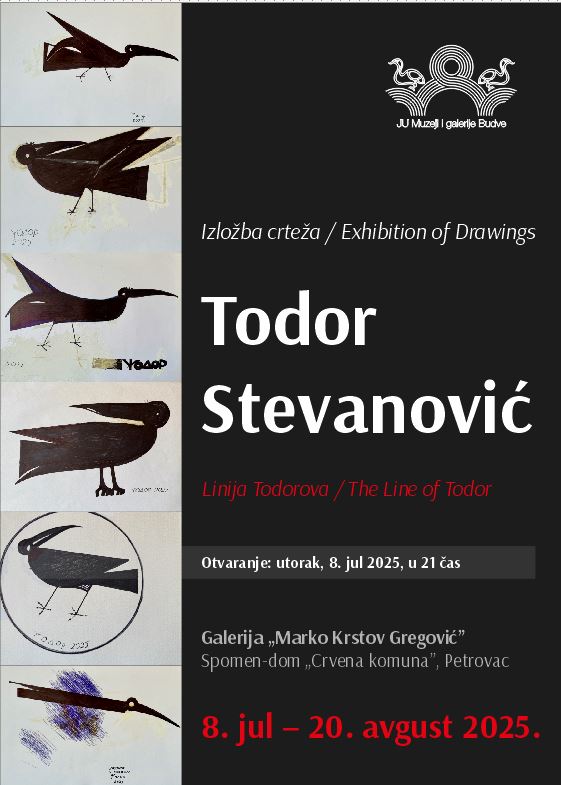 U organizaciji JU Muzeji i galerije Budve u Spomen domu „Crvena komuna” u Petrovcu, u utorak 8. jula u 21 čas će biti otvorena samostalna izložba crteža akademika Todora Stevanovića pod nazivom „Linija Todorova”. Izložbu će otvoriti mr Lucija Đurašković, istoričarka umjetnosti i direktorica JU Muzeji i galerije Budve.